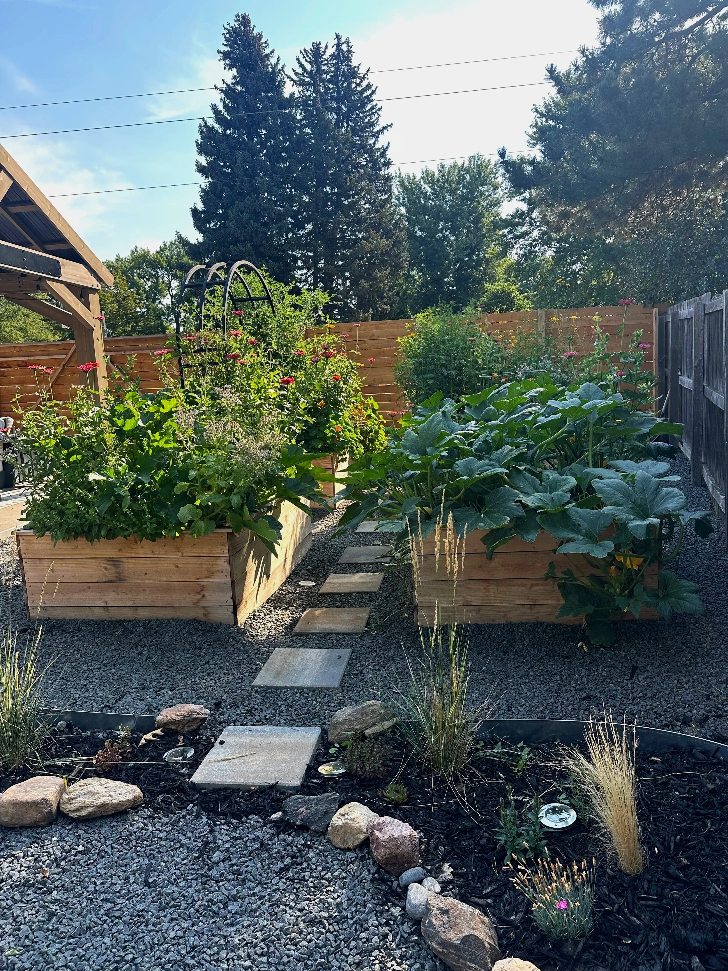 We dreamed of a space where our family could gather, play, and host friends, and we’d always wanted a garden of our own. With a little creativity and a lot of digging, we transformed our yard into a retreat filled with fresh fruit, vegetables, herbs, flowers, an arch trellis, and even solar lights. Not only do we get to enjoy garden-to-table meals, but our backyard also feels like a living piece of art.